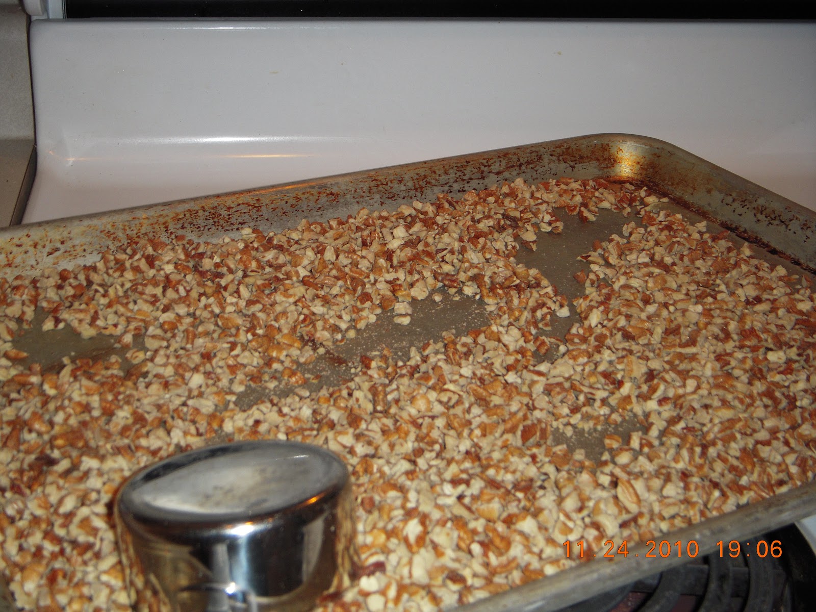 | roasted chopped pecans for pecan pie, of course (I burned the first batch...oops) |